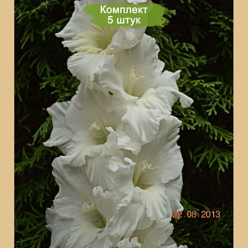 В комплекте 5 луковиц, готовых к посадке. Превратите свой сад в настоящее произведение искусства с гладиолусами "Первый Снежок"!